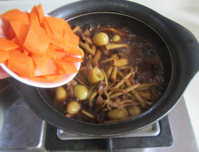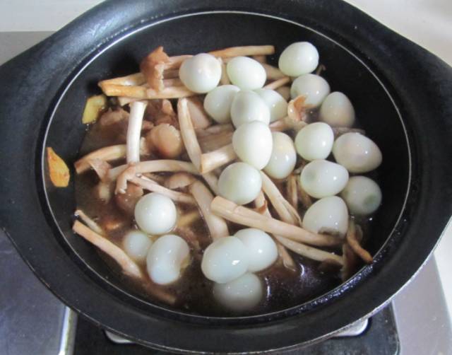 昨天去超市买了些鹌鹑蛋,鸡蛋营养丰富大家都知道,但小小的鹌鹑蛋营养价值并不比鸡蛋低。多吃鹌鹑蛋的益处多多,对于从事脑力劳动的工作者和学生,它是最佳经济型补养品,常吃健脑补脑。 特别喜欢茶树菇的香味,看到了新鲜的茶树菇就买了点回来,准备与鹌鹑蛋一起烧。茶树菇是一种食用菌类,它的清香浓郁,无论是烹炒还是褒汤都相当的美味,食后令人回味无穷。 茶树菇烧鹌鹑蛋 原料: 五花肉 1小块 茶树菇 200克 鹌鹑蛋 250克 胡萝卜 1个 酱油 1勺 料酒 1勺 姜片 3片 油盐 适量 制作: 1、鹌鹑蛋放入冷水锅中煮熟, 煮的时候加入点盐避免鹌鹑蛋易碎, 煮好后剥壳备用; 2、热锅凉油, 放入五花肉进去煸炒; 3、煸炒至五花肉微微出油后放入姜片进去煸炒; 4、烹入适量的料酒进去翻炒; 5、再倒入适量的酱油翻炒上色; 6、加入茶树菇继续翻炒; 7、倒入适量的水; 8、加入准备好的鹌鹑蛋; 9、大火煮开,加盖转为小火继续炖煮5-8分钟; 10、放入胡萝卜片进去翻炒均匀; 11、加入适量的盐, 大火收汁,盛入盘中, 表面撒上小葱末。 小贴士: 1、 煮鹌鹑蛋时加入点盐是为了避免鹌鹑蛋破裂; 2、先煸炒五花肉,微微将其油脂煸炒出来后加入再倒入茶树菇进去煸炒; 3、加入鹌鹑蛋炖煮熟后,再放入胡萝卜片; 4、放入胡萝卜片后加盐等调味料大火收汁。 (本文所有图片来源于网络,如有侵权,请联系删除!) 上一主题: “先爬后走”的宝宝更聪明! 下一主题: 没有了 |